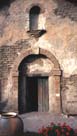 In 1995 a fine art exhibition program was initiated at the Mission. John Hazeltine's article Tom K. Enman: Southern California Impressionist explains why and how the exhibits began. Exhibits were initially held in West Wing gallery rooms alongside the central courtyard opposite Serra Chapel. In the Fall of 1999, the Mission began presenting exhibits in the historic Soldiers Barracks -- also one of the Mission's oldest buildings -- built in 1791. As of January, 2014 an exhibit of replicas of historic paintings of Mission San Juan Capistrano is on display in the Soldiers Barracks. The original paintings from which the replicas were made are from the collection of the Irvine Museum. (left: Side Entrance to Soldiers Barracks Gallery, 1999, photo © John Hazeltine. Click on photo for enlargement.)