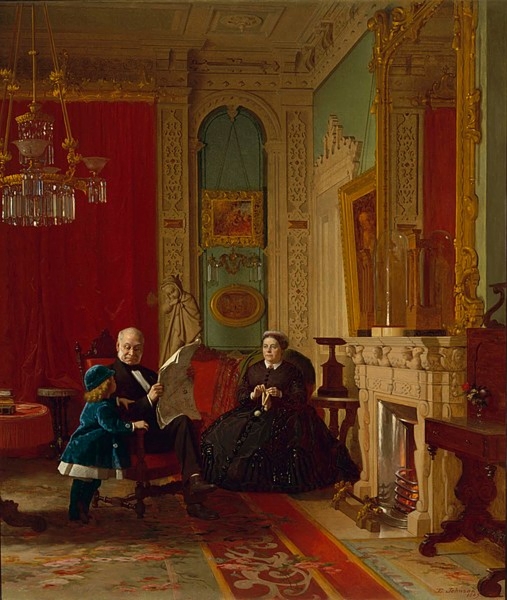 (above: Eastman Johnson, The Brown Family, [grandson William Adams Brown (1865-1943), James Brown (1791-1877), wife Eliza Brown (1803-1890)] 1869, oil on canvas, 38.5 x 32.3 inches, M. H. de Young Memorial Museum, Gift of Mr. and Mrs. John D. Rockefeller 3rd. Public domain, via Wikimedia Commons*)