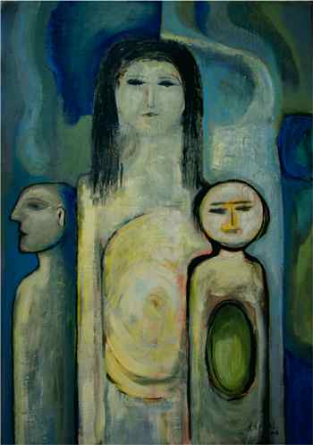 (above: Kamal Youssef (American, b. Egypt, 1923), Sentinel, 2004, Mixed media on canvas, 28 x 20 inches)