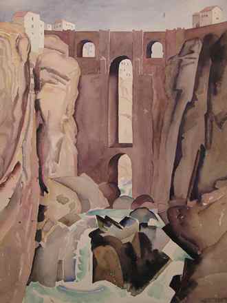 (above: Albert Byron Olson, 1885-1940, Bridge at Ronda, Spain, ca. 1933, Watercolor on paper; 21 x 16 inches. Greenough Collection, Birger Sandzén Memorial Gallery, Lindsborg, Kansas)