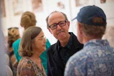 (above: Artist Keith Puccinelli meets with visitors at the opening of "tug" on Sept. 2, 2015. Photo by Brad Elliott courtesy of Westmont College)