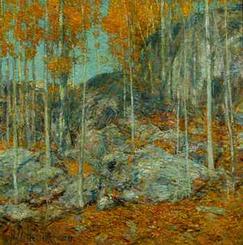 in his hands. (right: Childe Hassam, The Ledges, October