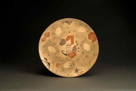2012. (right: Jacob Koopee, Hopi/Tewa, Plate, 2000. Gift of