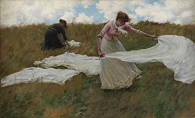 Accompanying the exhibition is a 248-page illustrated catalog with seven essays on topics ranging from environmentalism to the distinctions between private and public spaces, as well as full-color images. The catalog is tiled The Artist's Garden: American Impressionism and the Garden Movement and is edited by Anna O. Marley. The catalog was published December12, 2014 by University of Pennsylvania Press, in association with the Pennsylvania Academy of the Fine Arts. It is available through The Huntington Library, Art Collections, and Botanical Gardens. (right: Charles Courtney Curran (1861-1942), A Breezy Day, 1887, oil on canvas, 11 15/16 x 20 inches. Pennsylvania Academy of the Fine Arts, Philadelphia, Henry D. Gilpin Fund.)