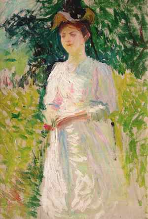 (above: Edmund C. Tarbell (1862-1938), Emeline Souther Tarbell in a New Castle, New Hampshire, Garden, ca. 1884-88, Oil on canvas board, 12 x 8 inches, Pierce Galleries Nantucket, MA)