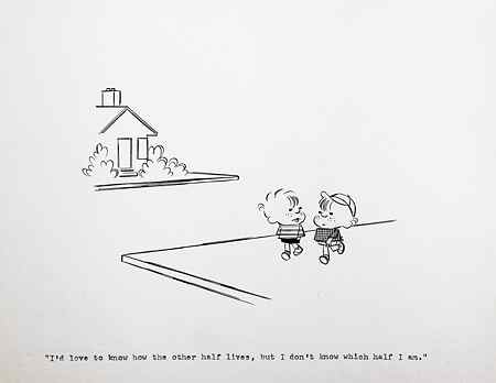 While she paid her bills by drawing gags in which every man is a skirt-chaser and every woman a bimbo, Getsler's heart was in the wit and innocence of children. This exhibit focuses on her gags about kids -- kids who want to understand grown-ups but maybe never be one, kids who are wise beyond their years but constantly befuddled by the strange rituals of adulthood. The gender-based gags now seem remarkably dated, and their content is so unsettling to our contemporary sensibilities that I only put a few of the tamer ones in the exhibit. But Getsler's insights into the world of children remain as timeless and relevant today as the day they were drawn.
