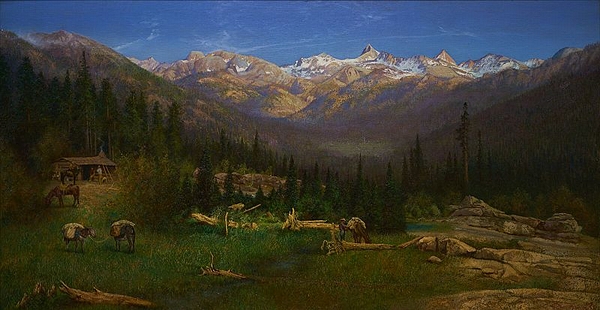 (above: Charles Dormon Robinson, Crests of the Sierra, 1909. oil on canvas. Crocker Art Museum, gift of Lillian M. Robinson, conserved with funds provided by Alfred C. Harrison, Jr., North Point Gallery, San Francisco, 1950.18. Public domain, via Wikimedia Commons*)