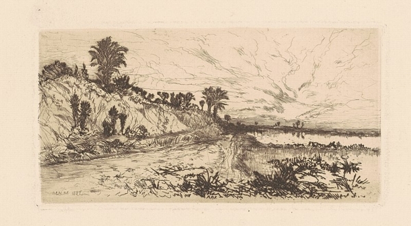 (above: Mary Nimmo Moran, Point Isabel, Florida, 1887, etching in black on laid paper, 9 5/16 ? 12 5/16 inches, National Gallery of Art. Public domain, via Wikimedia Commons*)