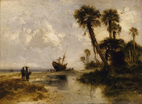 (above: Thomas Moran, Fort George Island, Florida, 1878, oil on canvas, 9 x 12 1/8 inches, Smithsonian American Art Museum. Gift of Neil M. Judd. Public domain, via Wikimedia Commons*)