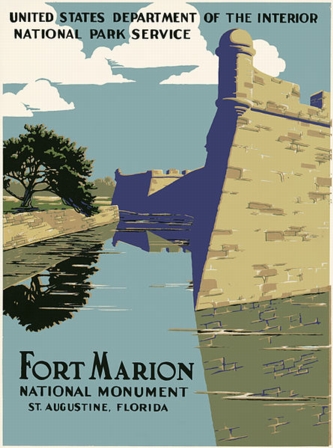 (above: Poster for Fort Marion National Monument (now Castillo de San Marcos), St. Augustine, Florida, c. 1938, Public domain, via Wikimedia Commons*)