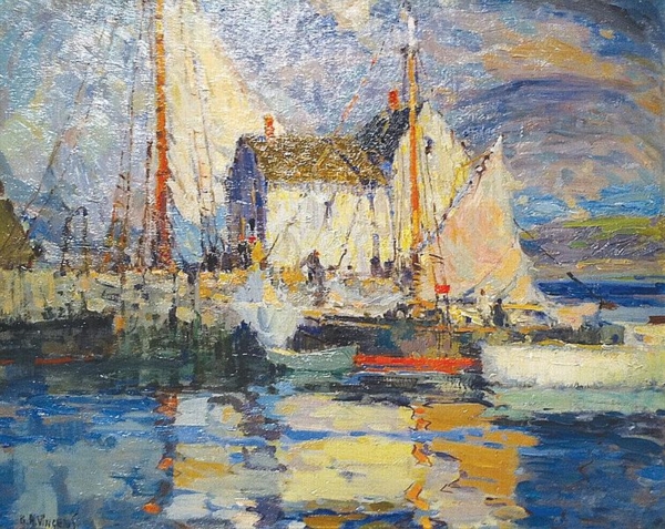 (above: Harry Aiken Vincent, Drying the Sails after the Rain, oil on canvas, 16 x 20 inches, Courtesy fo Gratz Gallery, Doylestown, Pennsylvania. Public domain, via Wikimedia Commons*)