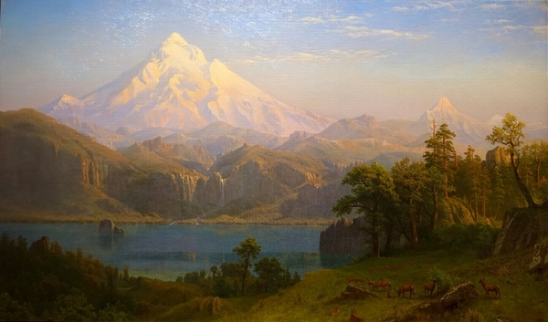 (above: Albert Bierstadt, Mount Hood, 1869, oil on canvas, Portland Art Museum - Portland, Oregon, Photo by Daderot. Public domain, via Wikimedia Commons*)