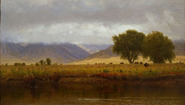 (above: Worthington Whittredge, Buffalo on the Platte River, 1866, oil on board, Blanton Museum of Art. Public domain, via Wikimedia Commons*)