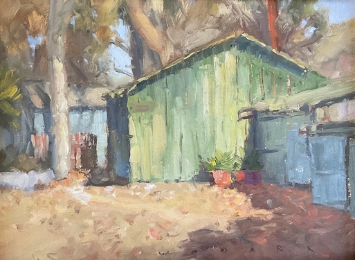 (above: Jim Wodark, Crystal Cove Barn, 2016, acrylic on canvas, 12 x 16 inches, Private collection)