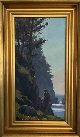 (above: Michael Obermeyer, Point Lobos, oil on canvas, n.d., 19 1//2 x 9 1/2 inches. Private Collection)