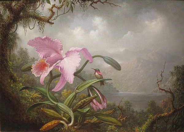 Orchid and Hummingbird, c. 1885, De Young Museum. Public domain,