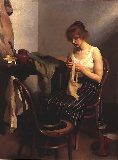 (above: R.H. Ives Gammell (American, 1893-1981), Sewing, c. 1923, oil, 40 x 30 inches*)