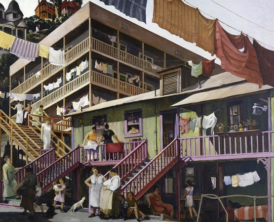 (above: Millard Sheets, Tenement Flats, c.1933-34, oil on canvas, 40.2 x 50.2 inches, Smithsonian American Art Museum, 1965.18.48. Public domain, via Wikimedia Commons**)