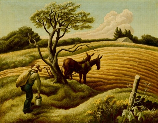 (above: Thomas Hart Benton, Noon, 1939, tempera and oil on board, 22 x 28 inches, Sothebys. Public domain, via Wikimedia Commons*)