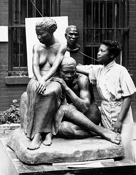 (above: Augusta Savage posing with her sculpture Realization, created as part of the Works Progress Administration's Federal Art Project, c. 1938, Photographer: Andrew Herman. Public domain, via Wikimedia Commons*)
