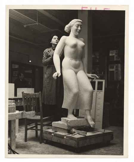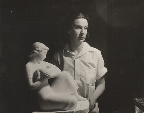 (above: Helen Gaulois in her studio with her sculpture, 1938. Photographer: Arnold Eagle. Public domain, via Wikimedia Commons*)