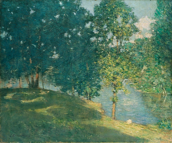 (above: Julian Alden Weir, Afternoon by the Pond, c. 1908, oil on canvas, 0.98 x 1.18 inches, The Phillips Collection. Public domain, via Wikimedia Commons*)