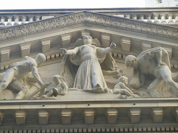 (above: The facade of the New York Stock Exchange with "Integrity Protecting the Works of Man," Public domain, via Wikimedia Commons**)