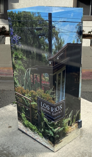 (above: Los Rios Street, San Juan Capistrano, 2024, utility box, vinyl wrap. Photo: The Alliance for San Juan Art)