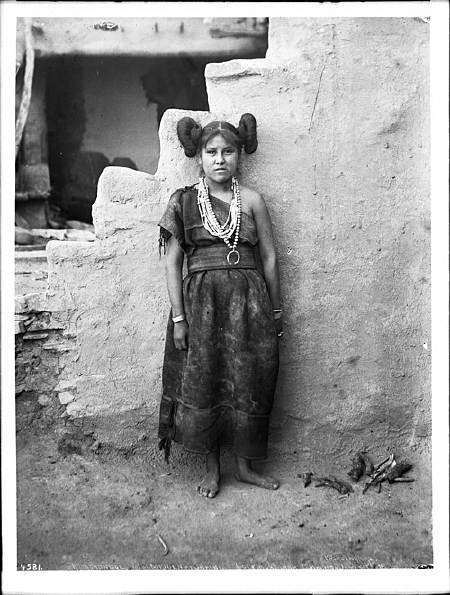 (above: George Wharton James, Mashonga, a Hopi maiden wearing rich silver ornaments made by Navajo Indians, Oraibi, Arizona, c. 1898, USC Libraries Special Collections. Public domain, via Wikimedia Commons*)
