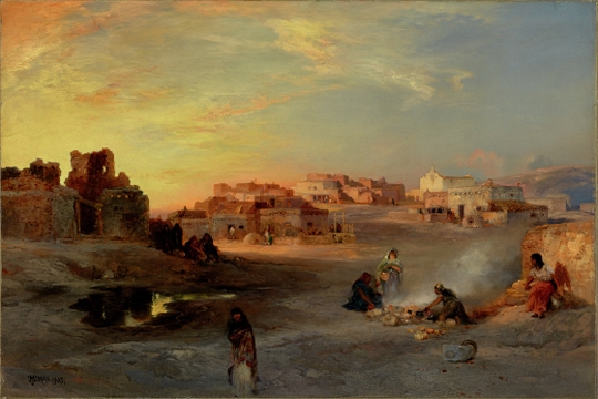 (above: Thomas Moran, Indian Pueblo of Laguna, New Mexico, 1905, oil on canvas; 20 1/4 x 301/4 inches, Denver Art Museum, Funds from Henry Roath, 2020.195)