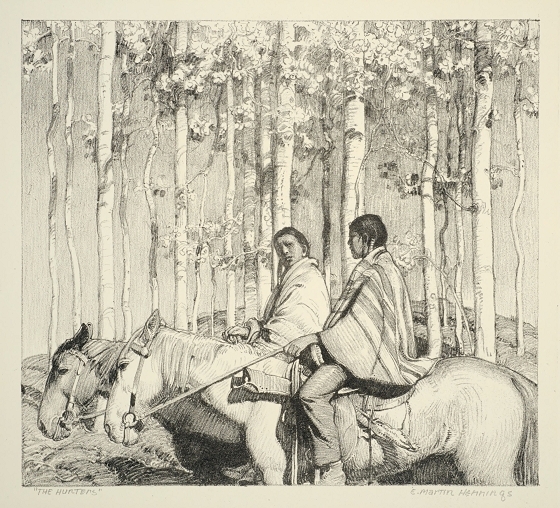 Hunters, n.d., lithograph, 9 x 10 inches, Lucile and Donald