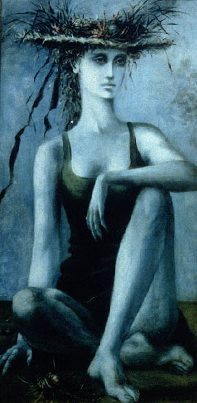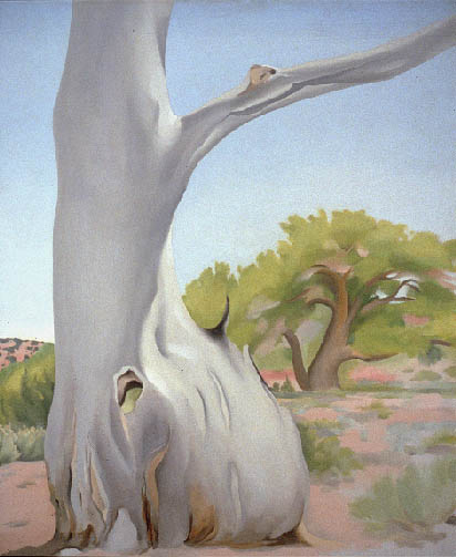 Images from top to bottom: Lilla Cabot Perry, Self Portrait, 1892, Oil on canvas, 24 x 20 inches, Perlmutter Fine Arts, San Francisco; Dorothea Tanning, Girl on the Beach, c. 1935, Oil on canvas, 30 x 15 inches, Perlmutter Fine Arts, San Francisco; Henrietta Shore, From the Studio Window, c. 1917, Oil on canvas, 18 x 22 inches, Perlmutter Fine Arts, San Francisco; Georgia O'Keeffe, A Friend, Watercolor, 17 x 4 inches, Collection of Bill and Dorothy Harmsen, Harmsen Museum of Art, Golden, Colorado, © 1999 The Georgia O'Keeffe Foundation, Artists Rights Society (ARS), New York; Rosa Bonheur, Trophies, Oil on canvas, 13 x 6 1/2 inches, Collection of Bill and Dorothy Harmsen, Harmsen Museum of Art, Golden, Colorado; Georgia O'Keeffe, Dead Cottonwood Tree, Abiquiu, New Mexico, 1943, Oil on canvas, 36 x 30 inches, Santa Barbara Museum of Art, Gift of Mr. and Mrs. Gary Cooper, © 1999 The Georgia O'Keeffe Foundation, Artists Rights Society (ARS), New York.