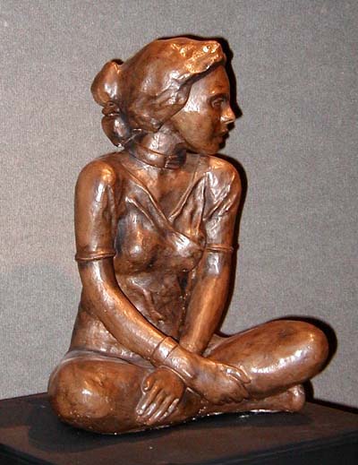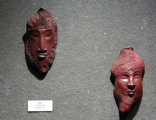 Images from left to right: Warrior and Daikini by Theresa Bayer, Terra Cotta; World Hunger by Billie Evans, Bronze; Mask: Ascention by Rose Van Vranken, Bronze; Pompeii Woman by Marian Waldrip, Terra Cotta; Keeper of Dreams by Kathleen Wilson, Bronze