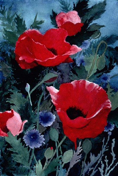 (left: Mary Ann Pope, River Run, 2000, waterccolor, 41 x 26