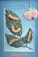 One of the most remarkable works in the exhibition is his "Aeggsopped Fable," a 2,500-word story written in eggshell on two large egg-shaped boards. It tells the tale of a farmer who becomes so upset when his eggs are stolen that he needs to visit his "pseggchieggtrist,'' Seggmund Fried. The story is laced with 712 egg words and puns, some of which, Rohan said, are "so bad, they're good." The piece took him nine months to complete. (right: Lepeggdoptera, 1997, acrylic and eggshell, 9 1/2 x 7 1/2 inches)