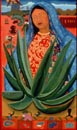 Within the Hispanic cultures, personal altars have served as domestic extensions of larger counterparts found in colonial churches throughout the world. These home-based sacred spaces traditionally fell within the creative realm of women, reflecting their faith as well as the specific desires and histories of the devotees and their families. (left: Santa Barraza, La Lupe-Tejana, 1995, oil on canvas, 30 x 50 inches © Santa Barraza)