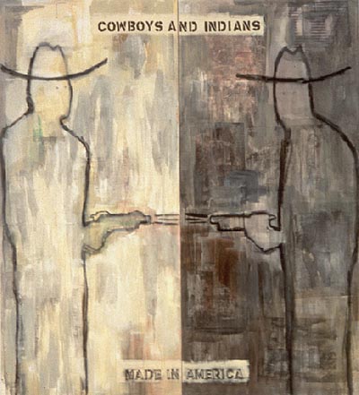 and Indians, 1995, diptych, acrylic, mixed media on canvas, 80 x 72