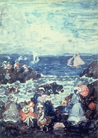 Maurice Brazil Prendergast (18581924) set the stage when he returned to Boston in 1895 after several years of art studies in Paris. With Impressionism still fresh in his mind, he began to paint the beaches, parks, and urban crowds of Boston and New York. To these he added colorful tourist views from periodic trips to France and Italy and became nationally known as a painter of modern life. He participated in historic exhibitions of modern art in New York, such as the exhibition of "The Eight" in 1908 and the Armory Show of 1913.