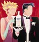 The art is modernistic -- a cubist collage with Art Deco elegance. The figures are faceless, their personalities foretold only through sharply drawn profiles.