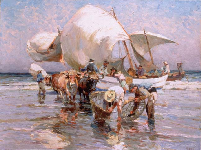 Above from left to right: Shell Fishers, 1910-11, collection of Aquinas College; Coming Ashore, 1922 or 1928, collection of Richard and Kate Wolters; Valencia, 1912, private collection; The Broken Mast, 1910-11, The Grand Rapids Art Museum, gift of Mr. and Mrs. Peter C. Cook; Idling Boats, 1935, collection of James and Lois Kahllo
