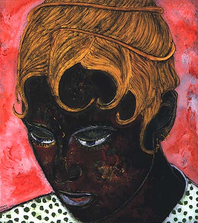 portraits of women reverse painted in oil on glass or Plexiglas.