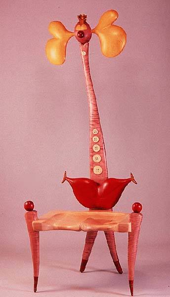 Dale Lewis became serious about woodworking as a middle-aged man in the early 1980s, after having spent most of his professional life in the media and graphic arts His interest in working with wood soon became an outright passion, and through study of manuals and some trial and error, he became technically proficient in a few short years. (left: Clown Princess, 2000, curly maple, dyed and natural)
