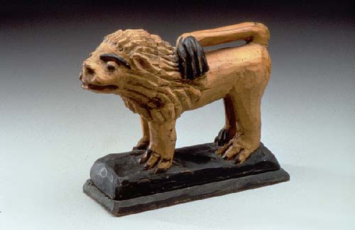 Among exotic animals, which fascinated people who seldom traveled far from home, are a regal lion carved by Wilhelm Schimmel (1817-1890) and a delightful drawing of a giraffe (c. 1836).
