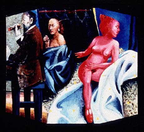 Paone (b.1936), "Judgment of Paris," 1998, acrylic on panel,