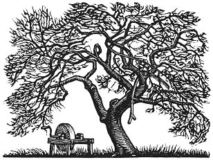 The artistic connection is somewhat more difficult to summarize, especially for modern readers. A major reason for this is that Lankes illustrations usually appeared in period collections of Frost's work, such as New Hampshire (1923), West Running Brook (1928), and Collected Poems (1930-1939); with the Christmas poems of 1935-1937, and 1941; and with the occasional publication of individual Frost poems in periodicals. Unfortunately, if understandably, readers of today typically read Frost not in these, but rather in new editions that often are published hastily and devoid of illustrations. (right: Appletree and Grindstone, 1923 (L253), Tailpiece from New Hampshire by Robert Frost, Henry Holt & Co., Inc., New York, 1923, Woodblock print, 3 x 4 inches, Collection of Pat Algier, Courtesy of the Children of J. J. Lankes)