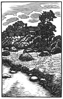 Robert Frost and J.J. Lankes' forty years of friendship and collaboration began in 1923 when Frost First saw a print by Lankes and then chose him to illustrate his poem "Star Splitter" for The Century Magazine. Although this event served as their formal introduction, Lankes was already familiar with Frost's poetry, and had even drawn on it for inspiration in some of his early prints. Welford D. Taylor, a prominent Lankes scholar, describes the appreciation that the poet and the printmaker had for each other's work: "What had impressed each man was a recognition of the aesthetic and thematic values he shared with the other -- a 'coincidence of taste,' as Frost put it. Both based much of their work on rural subjects, employed understatement and symbol and explored the question of human significance in the over-all scheme of nature. Some of these similarities they acknowledged when their actual correspondence began, in the summer of 1923, as Lankes prepared the 'Star-Splitter' designs." (left above: Hank Tower's Field, 1928 (L570), Woodcut print from West Running Brook by Robert Frost, Henry Holt & Co., Inc., New York, 1928, 5 5/8 x 3 1/2 inches, Collection of Pat Algier, Courtesy of the Children of J. J. Lankes)