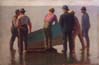 From left to right: E. A. Page, Counting the Catch, oil on canvas, 14 x 22 inches, Neil Rossman Collection; C. E. L. Green, Fishing Shacks at Swampscott, oil on canvas, 9 x 13 inches, Neil Rossman Collection; William Bradford, Lynn Beach, oil on canvas, 10 1/2 x 19 3/4 inches, Lynn Historical Society; William Partridge Burpee, Dories on Lynn Beach, c. 1890s, oil on paper, 11 3/8 x 16 inches, Private Collection, Courtesy Childs Gallery.