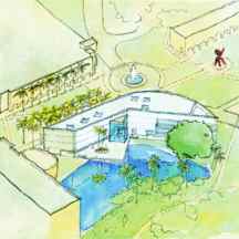 (above: Architectural firm Hellmuth Obata + Kassabaum's watercolor rendering of the Frost Art Museum, view from the top)