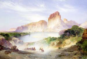 in Wyoming by Thomas Moran and a Native American scene by John Mix Stanley,