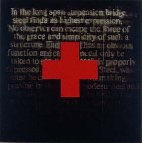of image and text to larger, somewhat abstract silk-screened canvases of